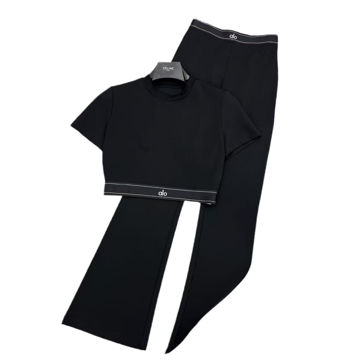 This stylish Alo Set features a classic black color that will never go out of style. Made with high-quality materials, this set offers comfort and durability. Perfect for yoga, Pilates, or everyday wear, this set is a must-have for any active lifestyle. Upgrade your workout wardrobe today with Alo Set.