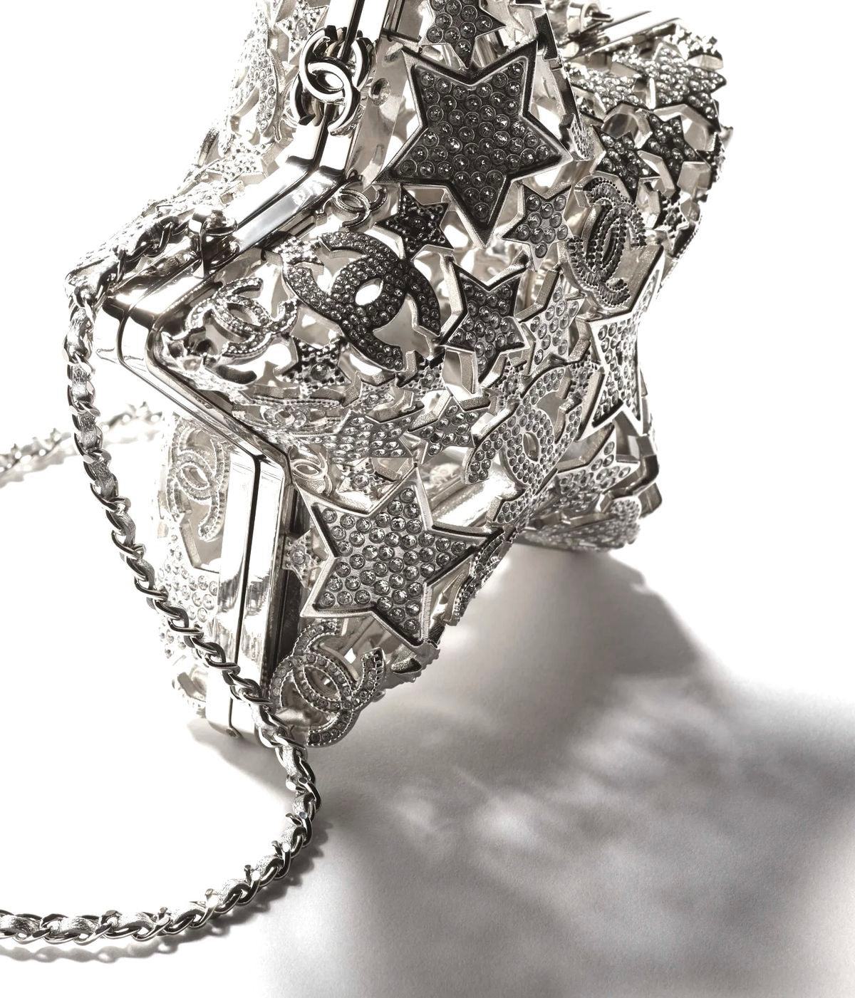 Expertly handcrafted with real crystal elements, the Chanel Star Minaudière exudes luxurious elegance. The stunning pavé detail adds a glamorous touch, making it the perfect accessory for any formal occasion. Elevate your style and make a statement with this exquisite handbag.